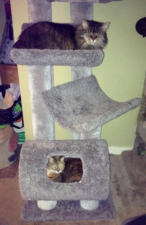 Want to rest, play, and scratch? These trees are purr-fect. They are all carpeted and built sturdy so you and your pets can sleep well knowing everyone is safe.