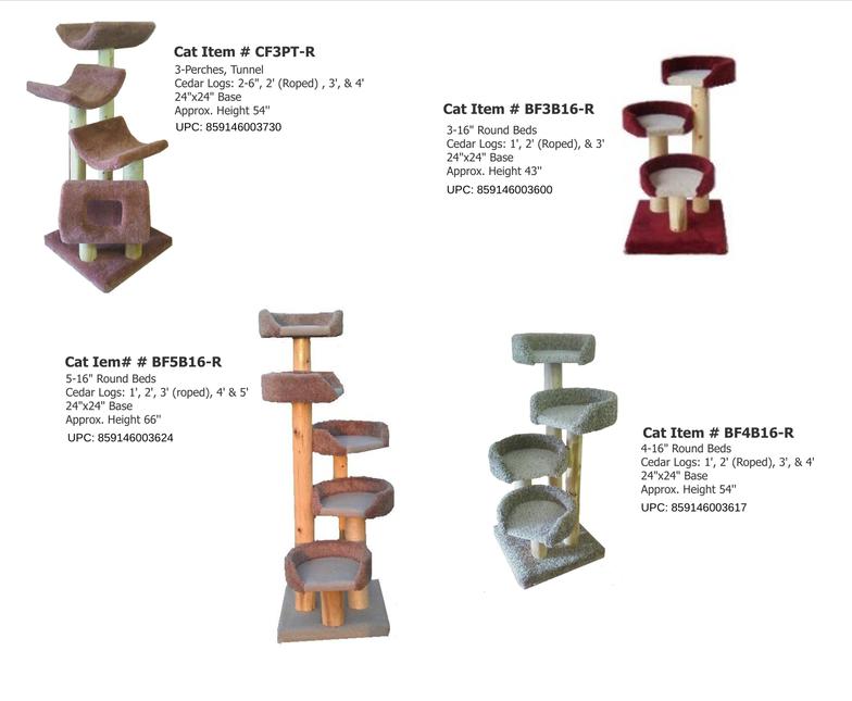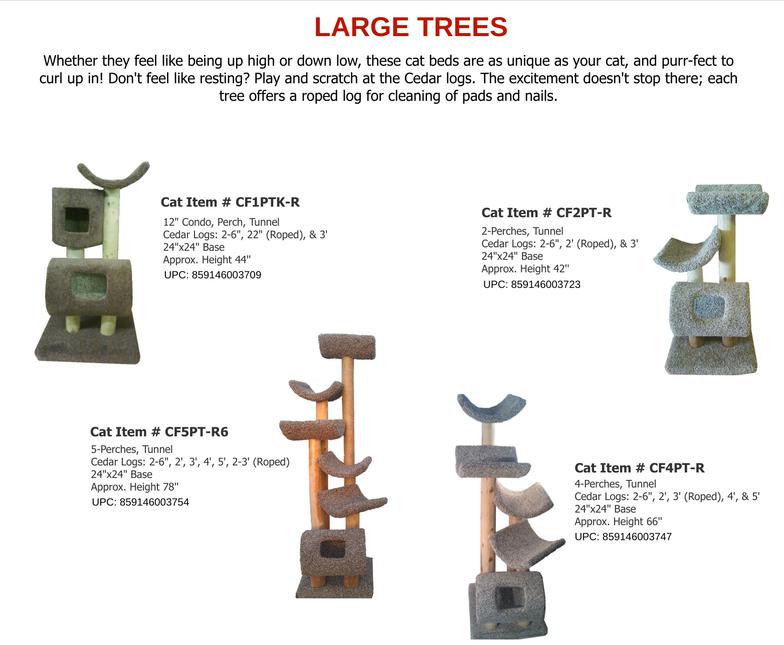 Whether they feel like being up high or down low, these cat beds are as unique as your cat, and purr-fect to curl up in! Don't feel like resting? Play and scratch at the Cedar logs. The excitement doesn't stop there; each tree offers a roped log for cleaning of pads and nails.