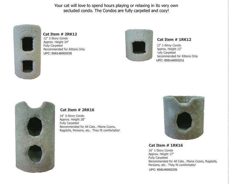 Your cat will love to spend hours playing or relaxing in its very own secluded condo. The Condos are fully carpeted and cozy!